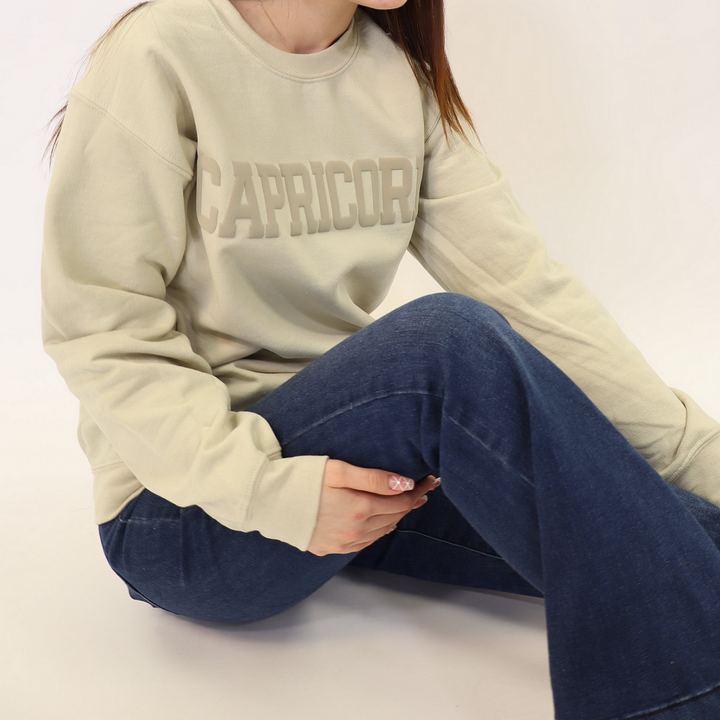 ♑Custom Zodiac Puff Print Crewneck-Capricorn Crewneck