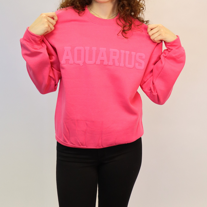 ♒Custom Zodiac Puff Print Crewneck-Aquarius Crewneck