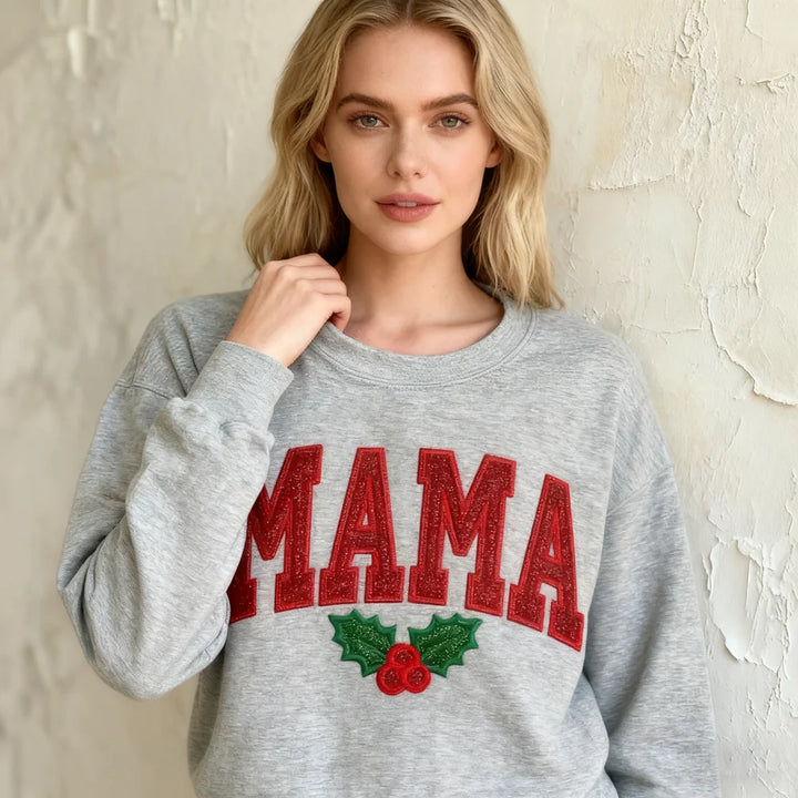 Christmas Mama Sweatshirt Embroidered Glitter Crewneck