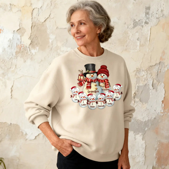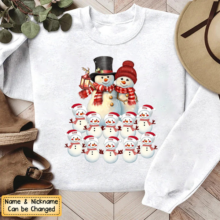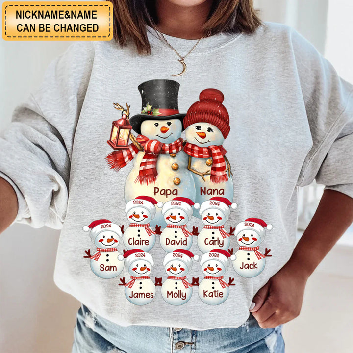 Couple Snowman Christmas Grandma Grandpa With Grandkids Personalized Sweatshirt