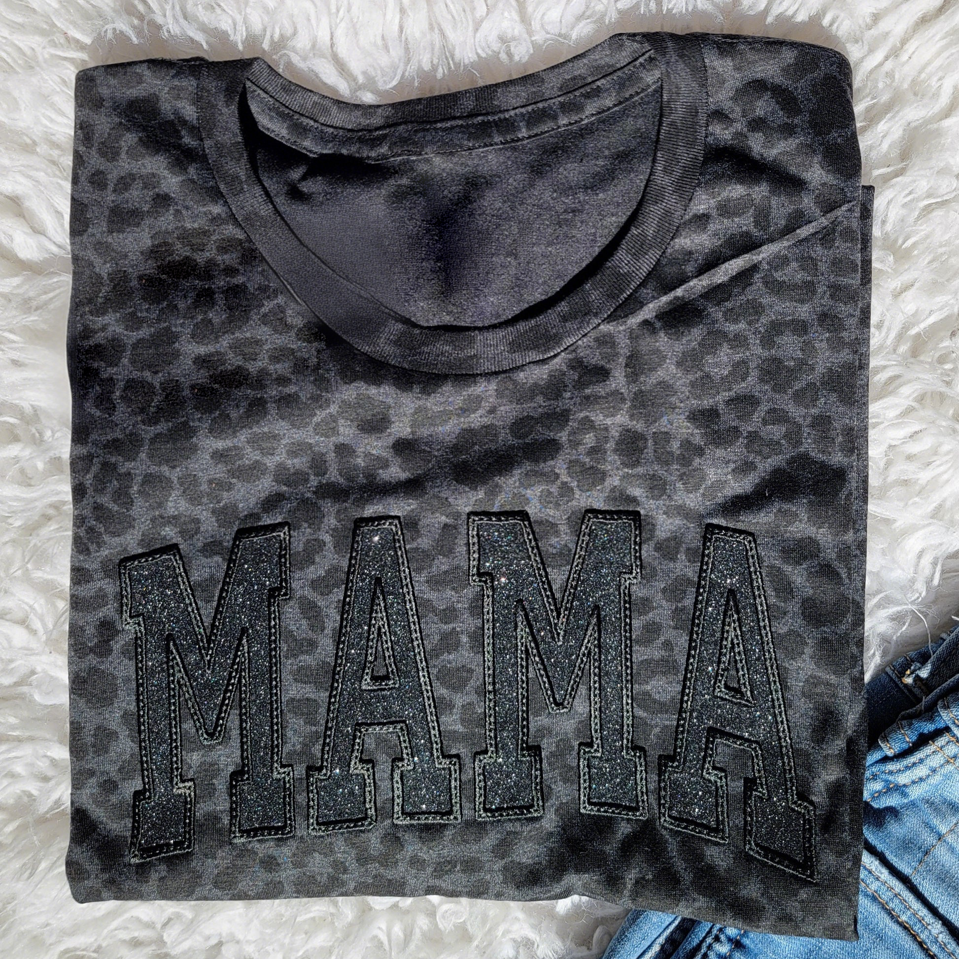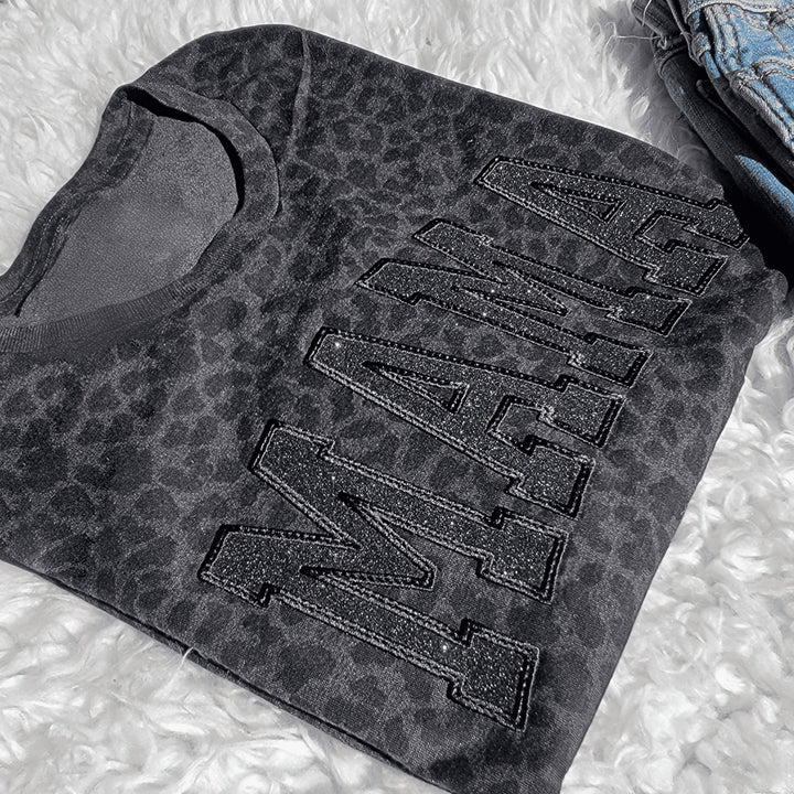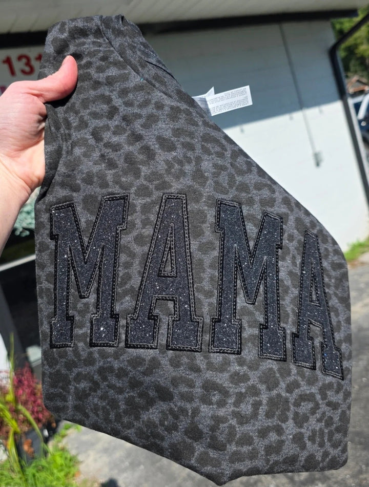 Custom Black Leopard Glitter MAMA Embroidered Sweatshirt/Tee