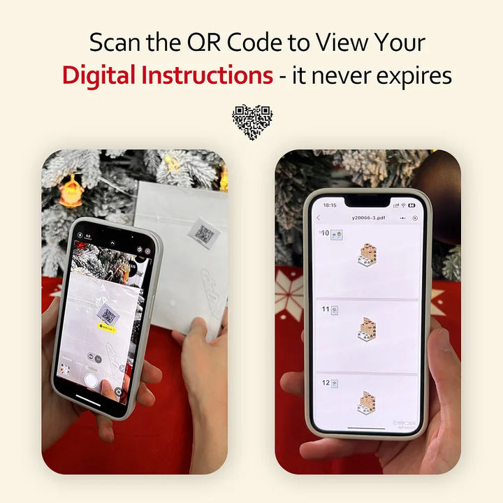 Once you receive the package, scan the QR code on the package to get the tutorial. Then it's time to start your assebling journey! Enjoy your special moment!