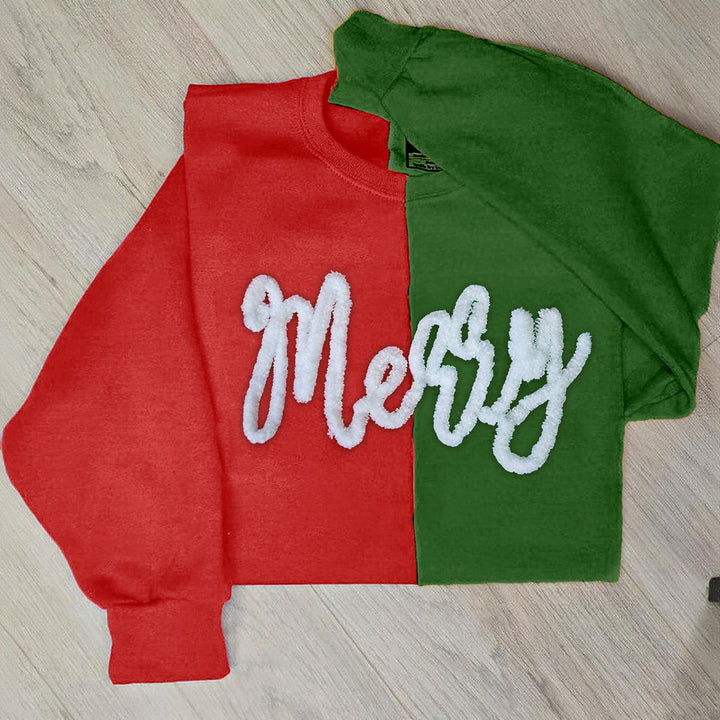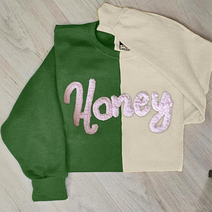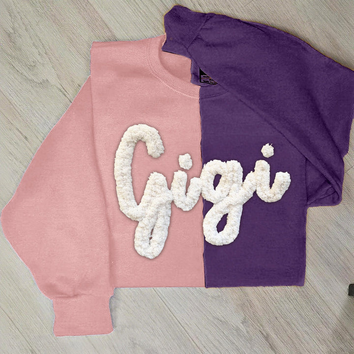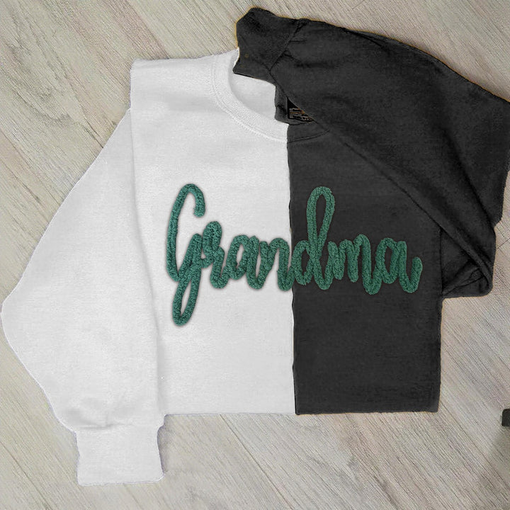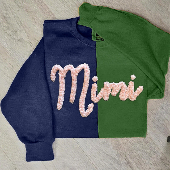 Custom Chenille Yarn Embroidered Mama Two Tone Sweatshirt