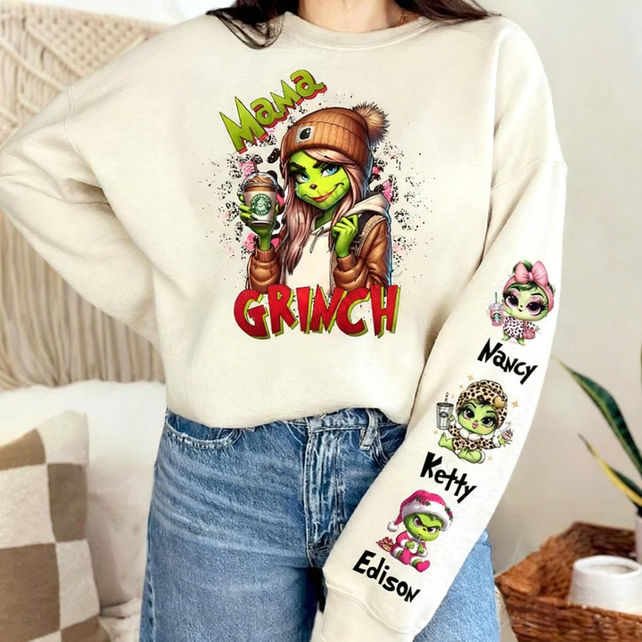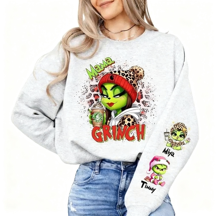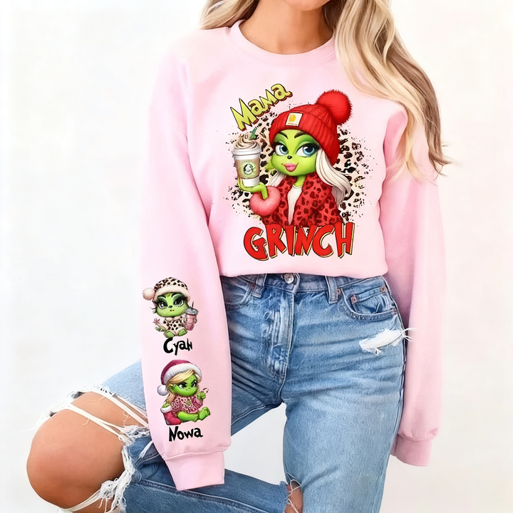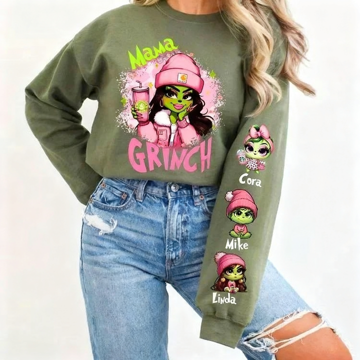 Custom Christmas MAMA Daddy Sweatshirt Gift with Kid's Names on the Sleeve