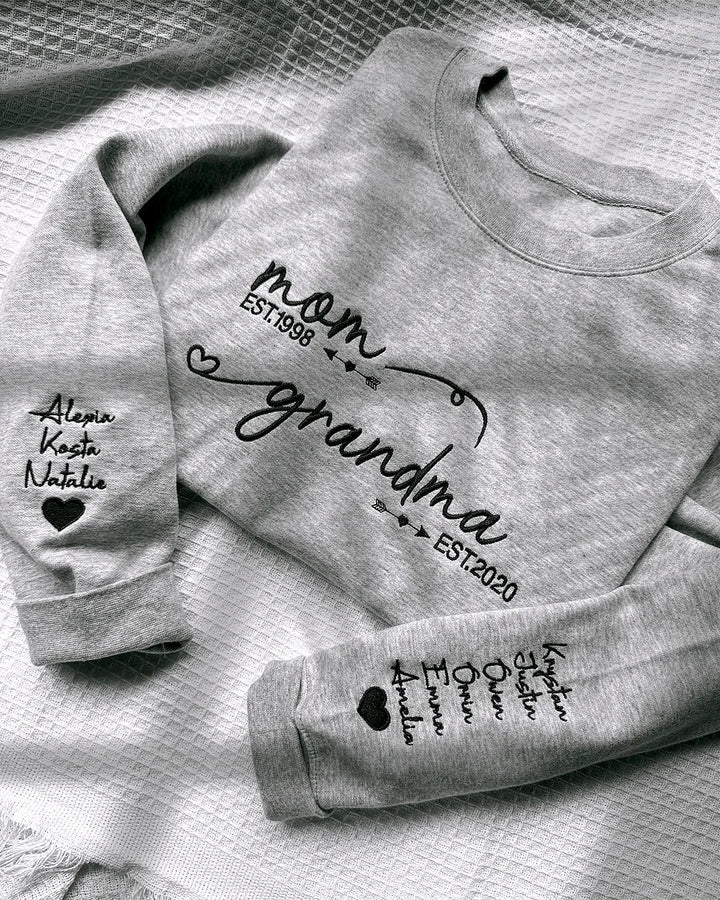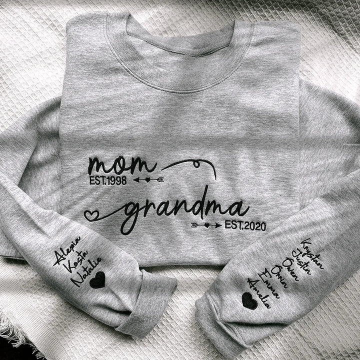 Custom Embroidered From Mom to Grandma Sweatshirt with Kids Names on Sleeves, Christmas Gift for Grandma