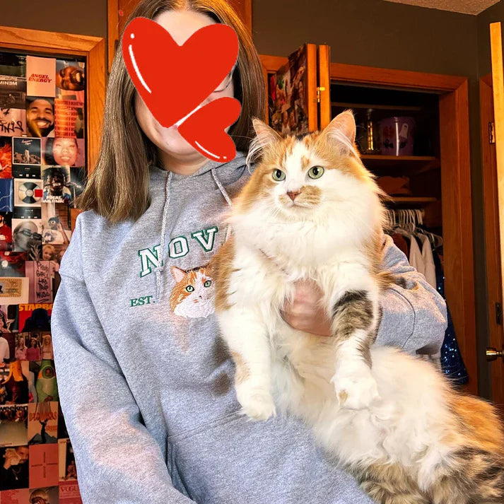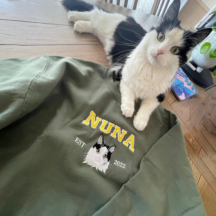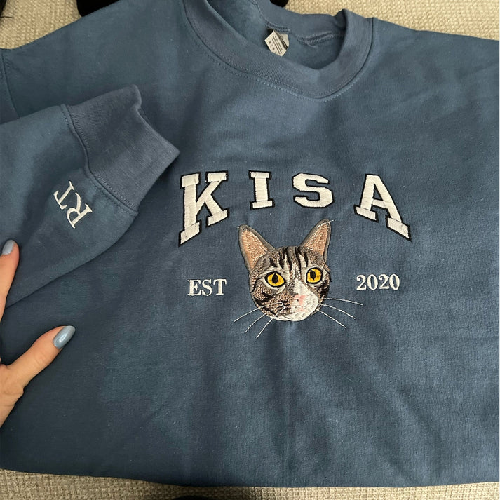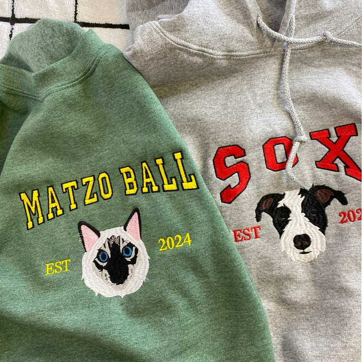 Immortalize your furry friend! Custom embroidered pet portrait EST Sweatshirt Hoodie Tshirt gift for pet lover.