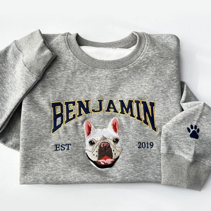 Celebrate your love for your furry friend with our Custom Dog Face Photo Embroidered Sweatshirt Hoodie! Personalize this unique gift with your pet's photo and special date, making it the perfect cozy companion for pet lovers who cherish their four-legged family members.
