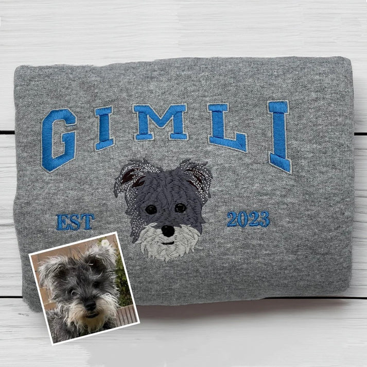 Custom Embroidered Pet Dog Portrait Photo Sweatshirt Hoodie Keepsake Gift for Pet Lovers