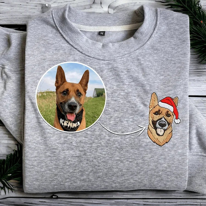 Custom Embroidered Pet Portrait Christmas Sweatshirt Hoodie T-shirt Christmas Gift