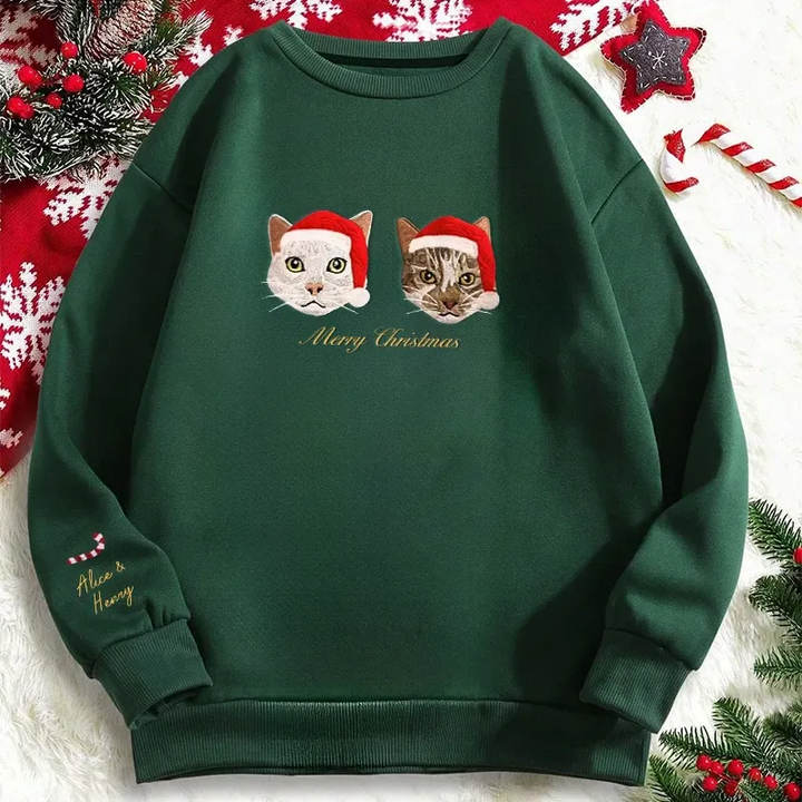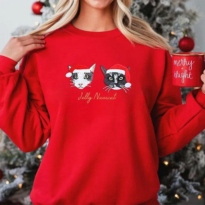 โจ Custom Embroidered Pet Portrait Christmas Sweatshirt Hoodie T-shirt โจ