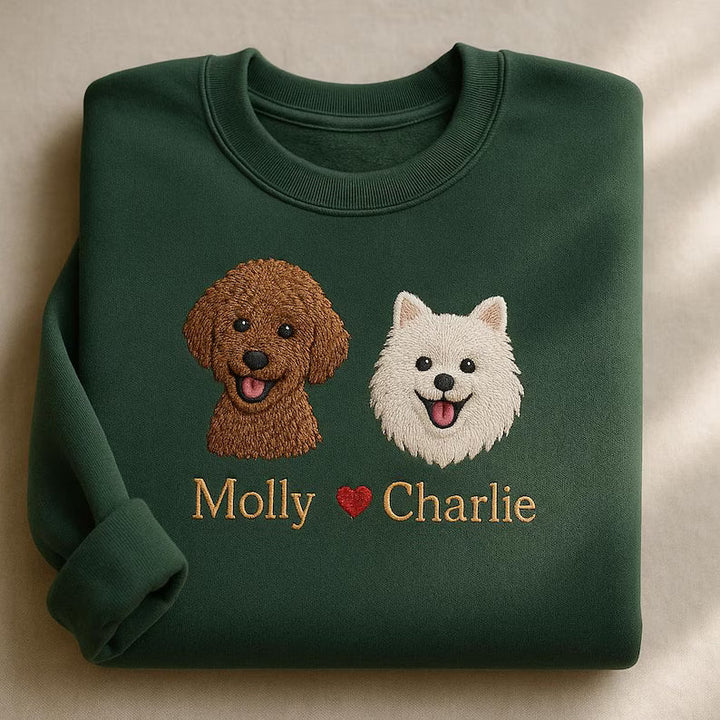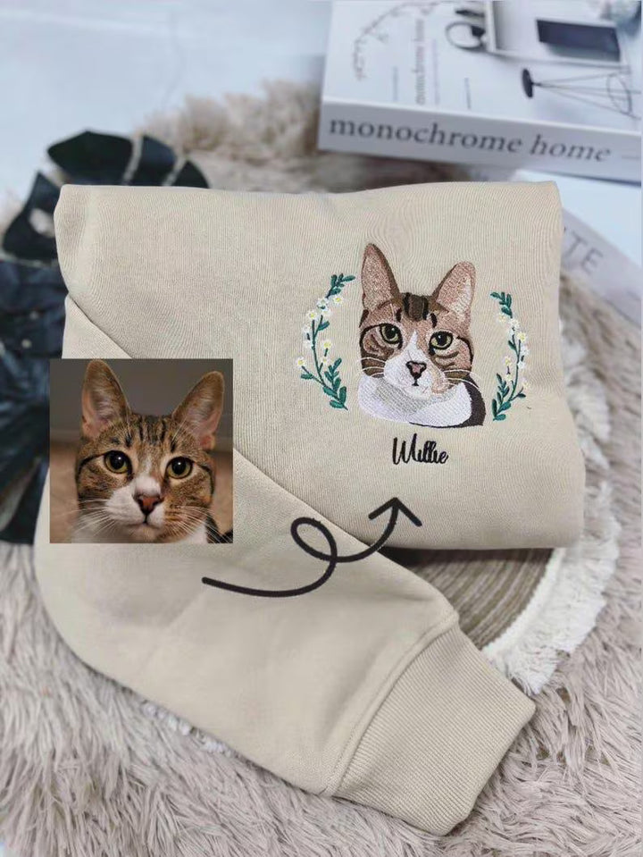 - Custom Embroidered Portrait: Hand‑stitched pet portrait created from your photo for dimensional, long‑lasting detail.