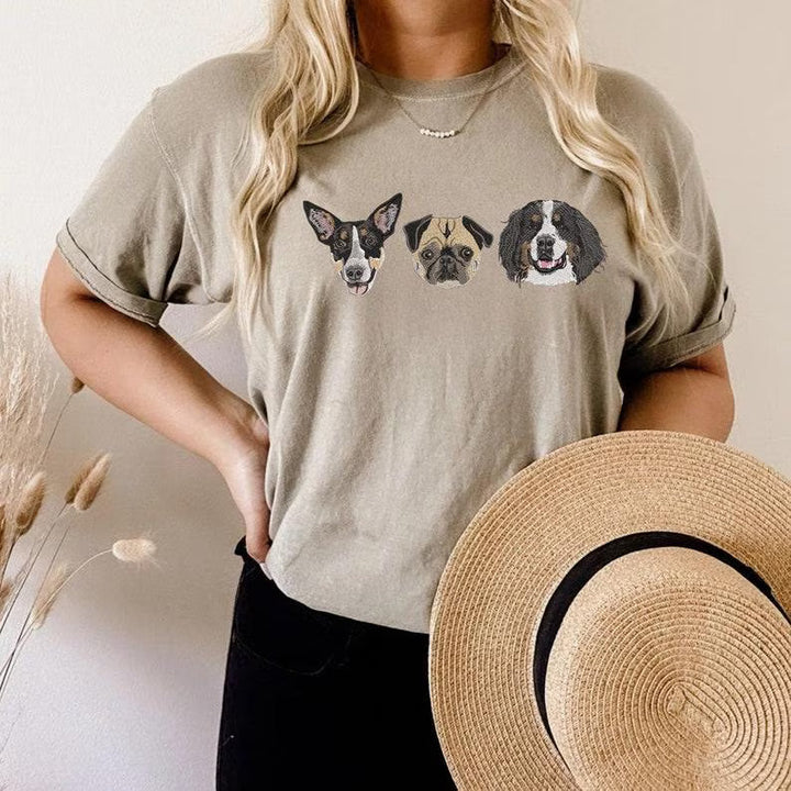 Custom EMBROIDERED Pet Portrait T-Shirt,Custom Dog Mom Gift, Cat Mom,Personalized Pet Memorial,Personalized Pet Embroidery