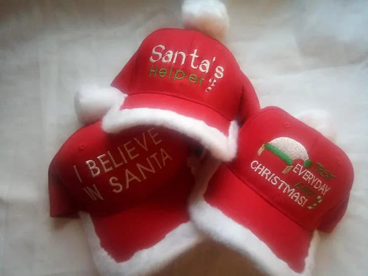 Each cap comes with a pom pom topper and fuzzy felt bordering.
