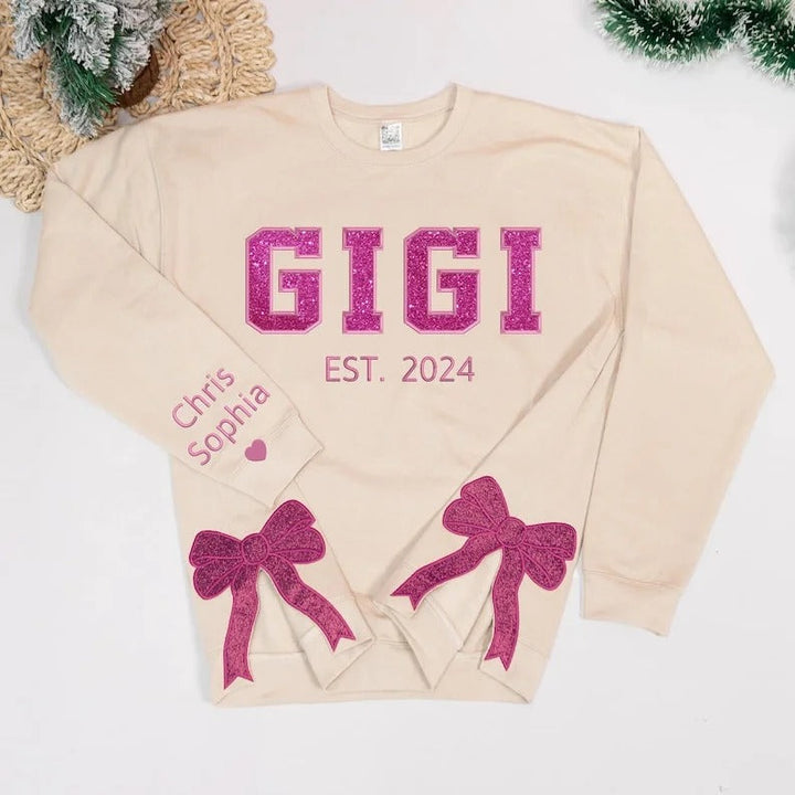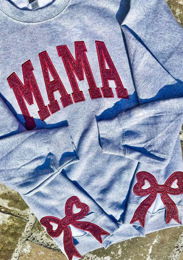 Custom Embroidery Glitter Side Bow Mama Sweatshirt