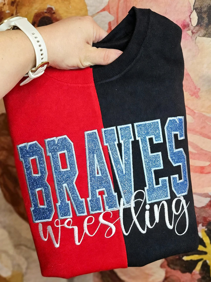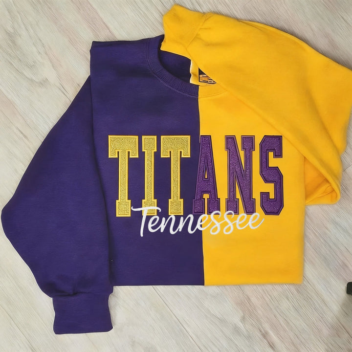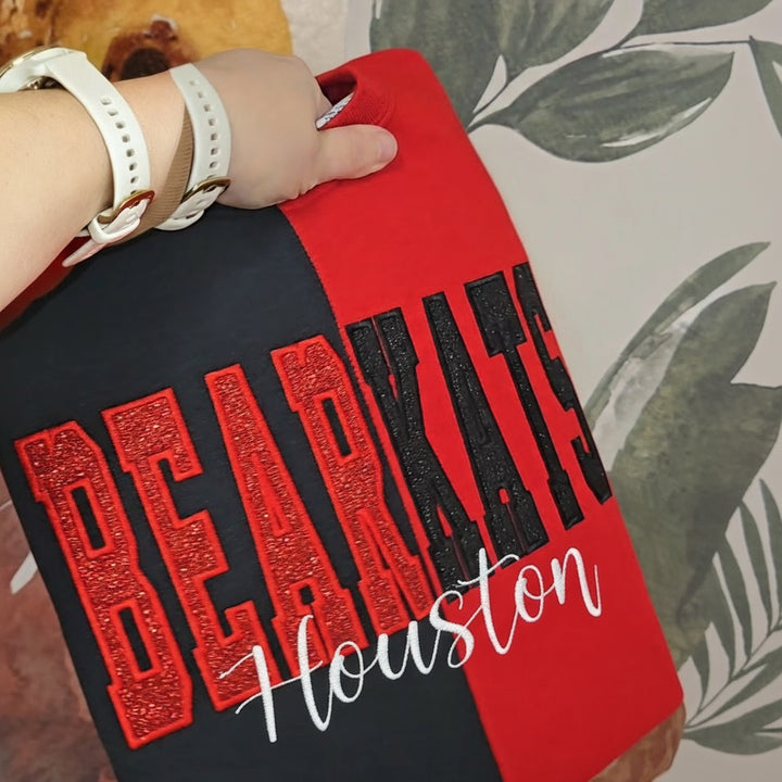 Custom Glitter Embroidered Game Day Team Name Two Tone Sweatshirt for college, cheerleading, football, baseball, softball, ice hockey, soccer