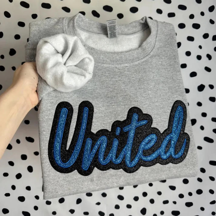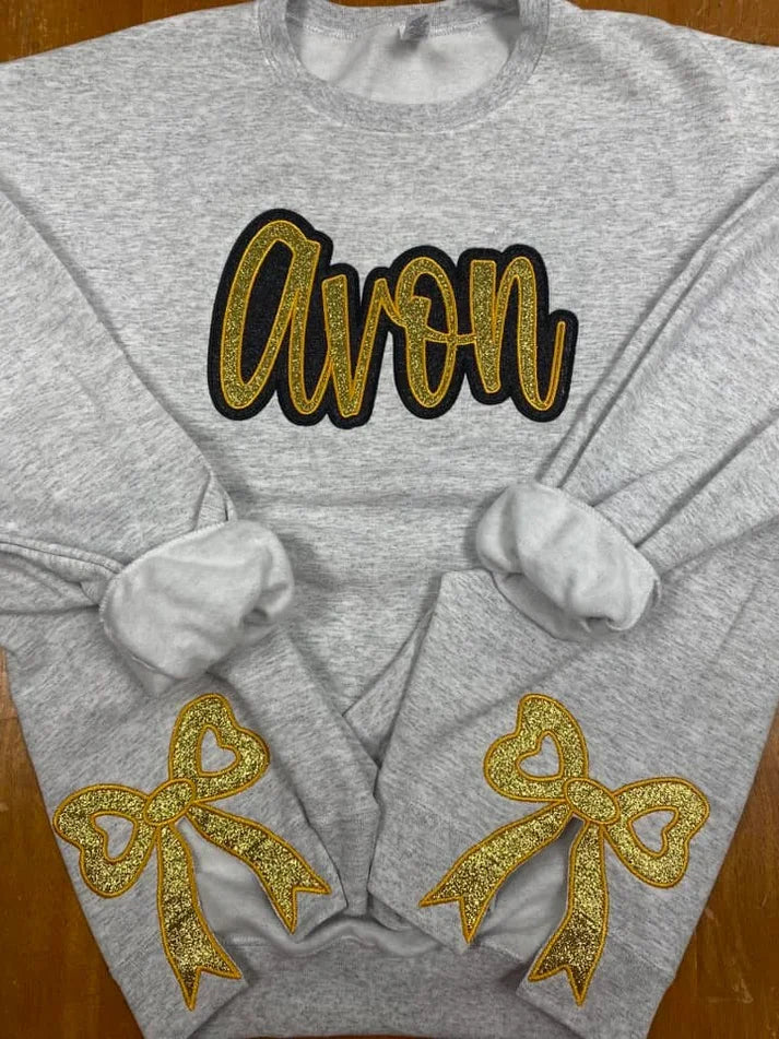 Celebrate your love for the game and your favorite athlete with our School Team Glitter Embroidered Sweatshirt! This cozy and stylish sweatshirt features beautiful glitter embroidery that sparkles with every move, along with adorable glitter embroidered bows for a unique, feminine touch. Whether you're cheering from the sidelines, attending a tournament, or running errands, this sweatshirt keeps you comfortable while show off your team pride in the cutest way.