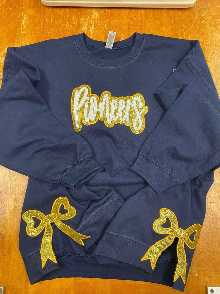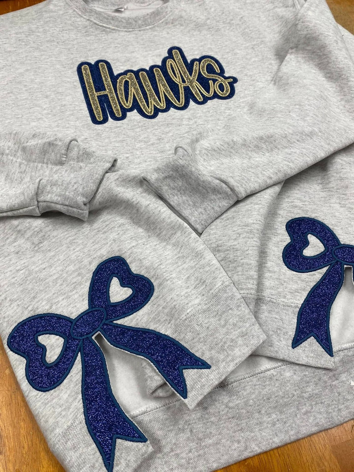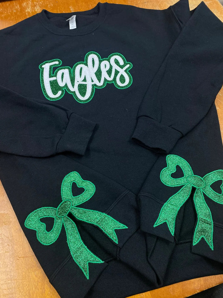 Custom Glitter School Team Mascot Embroidered Sweatshirt With Side Bow