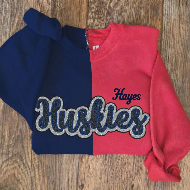 Custom Glitter Team Mascot Two Tone Embroidered Sweatshirt For Game Day