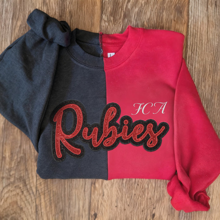 ⨠Stand out in sparkle and style with ourĀ Glittered Split Sweatshirtācustom-made for those who love a bold, personalized look. ChooseĀ two sweatshirt colors,Ā two glitter shades, andĀ up to four sleeve detailsĀ to make it uniquely yours. Perfect for game days, spirit wear, or just showing off your personality.