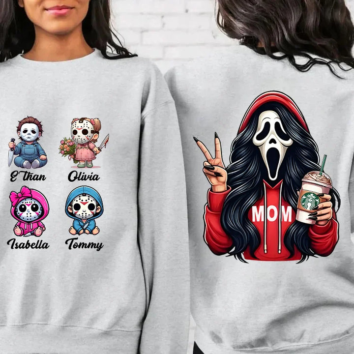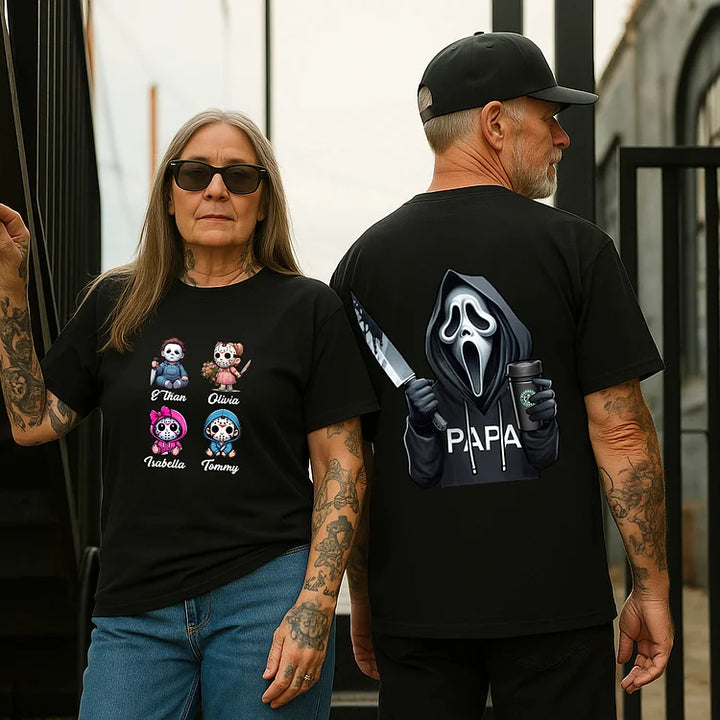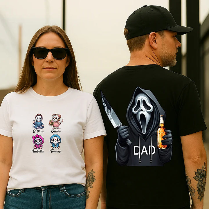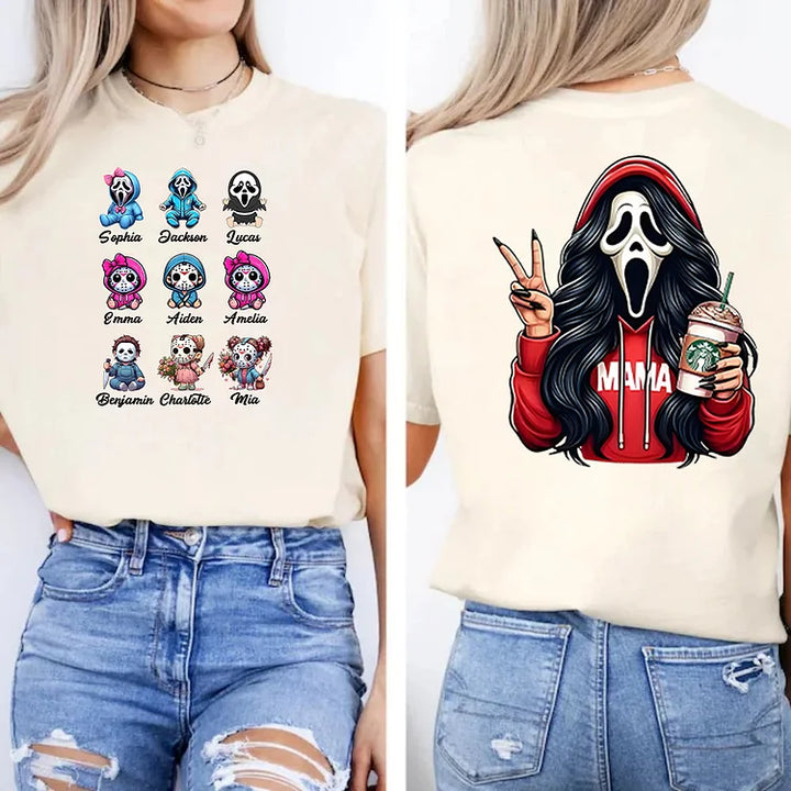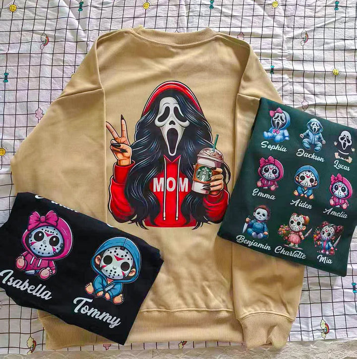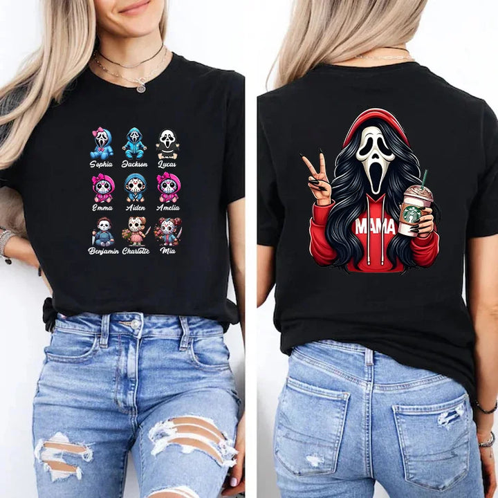 Custom Halloween MAMA/DAD Shirt Gift with Kid's Names on the Chest Double-side Print T-shirt/Sweatshirt