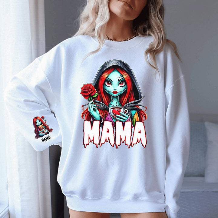 Custom Halloween MAMA Sweatshirt with Kid's Names on the Sleeve