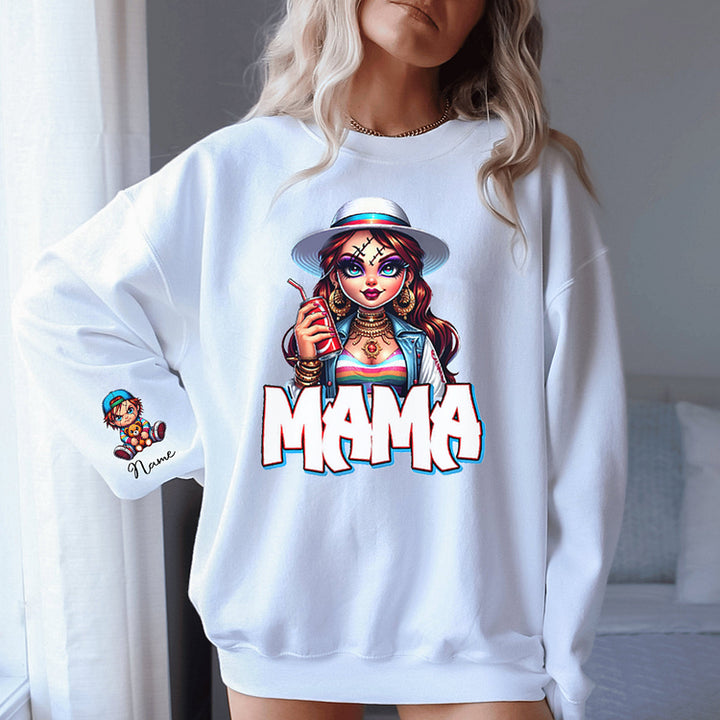 Custom Halloween MAMA Sweatshirt with Kid's Names on the Sleeve