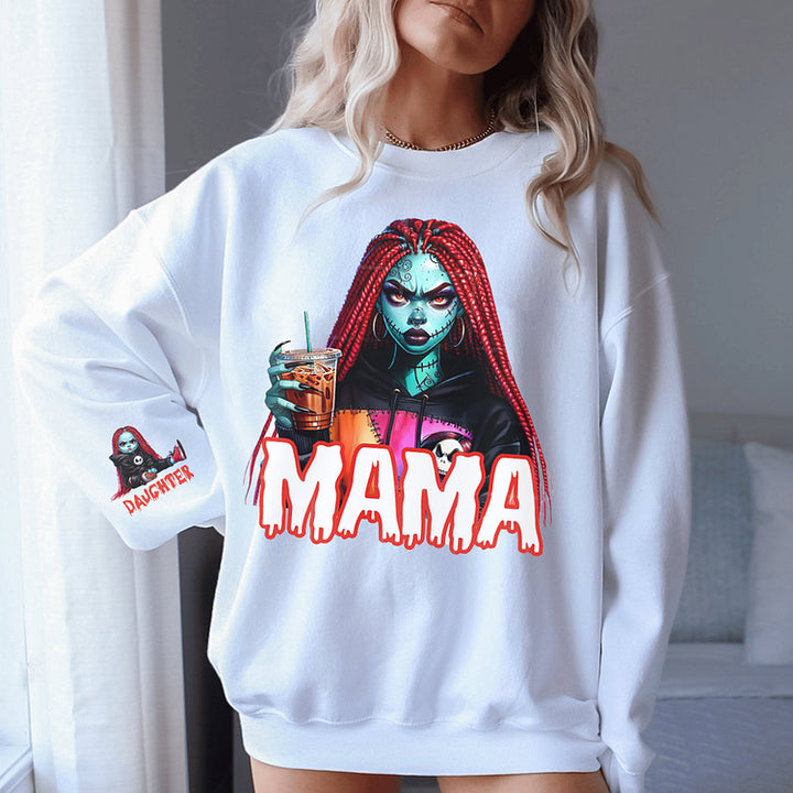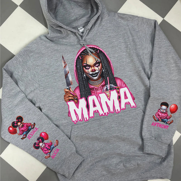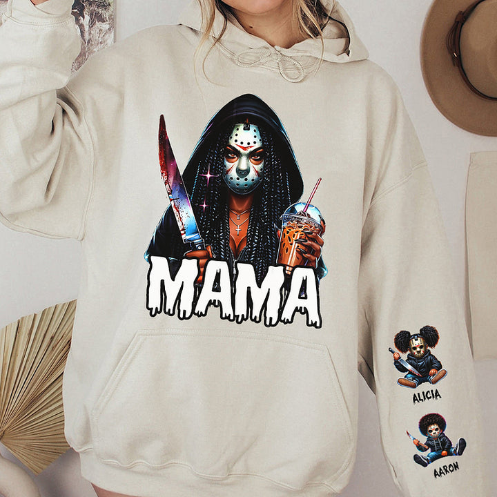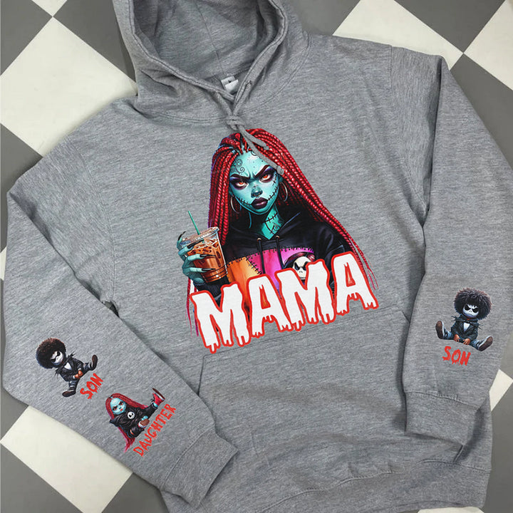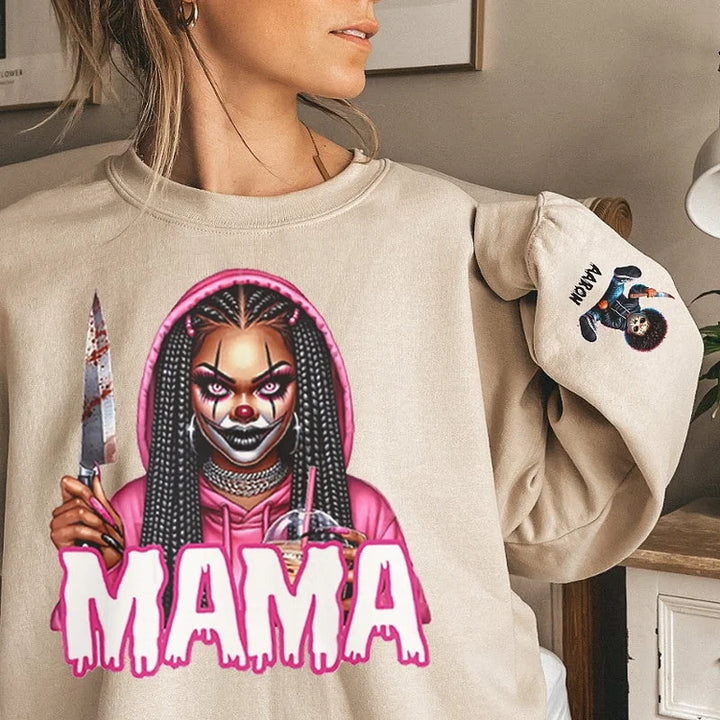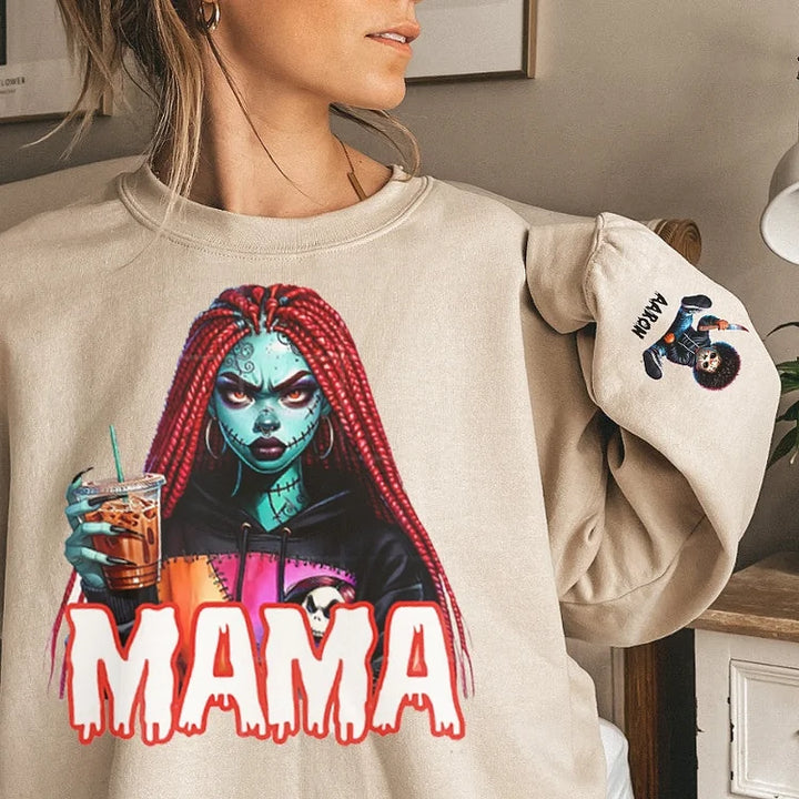 Custom Halloween MAMA Sweatshirt with Kid's Names on the Sleeve