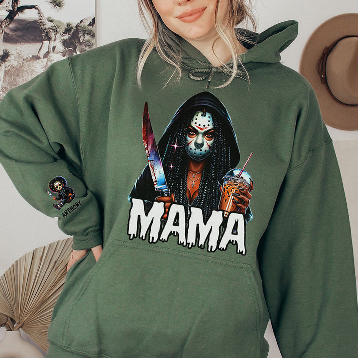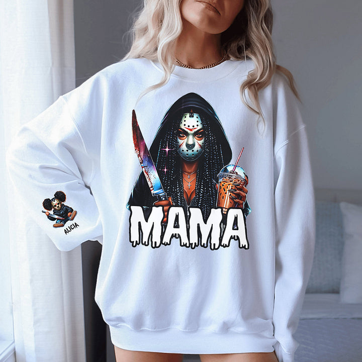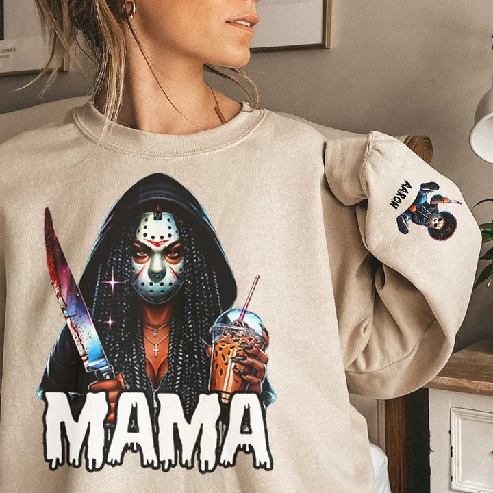 Custom Halloween MAMA Sweatshirt with Kid's Names on the Sleeve