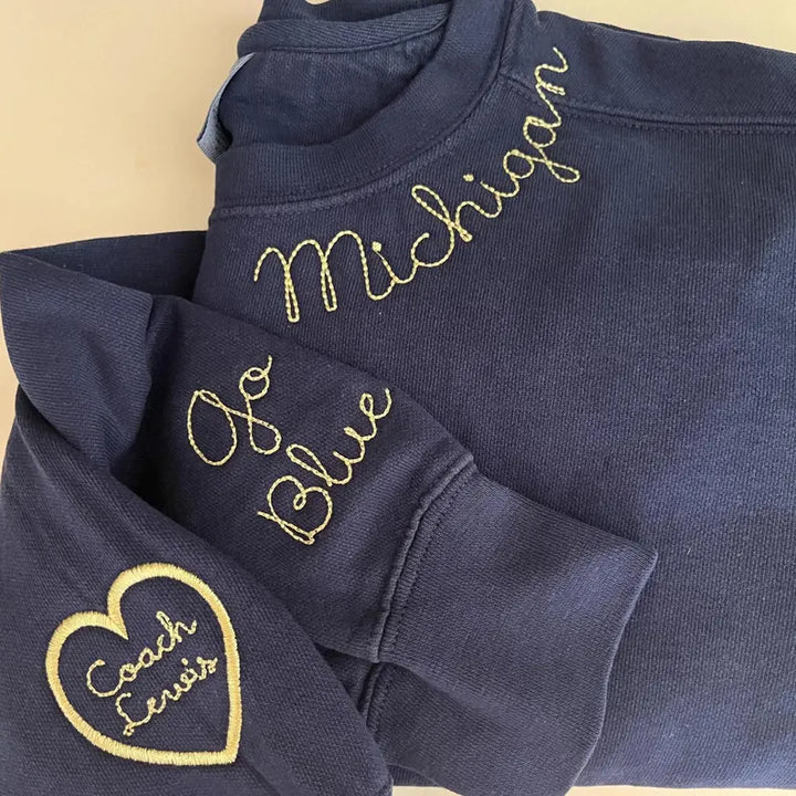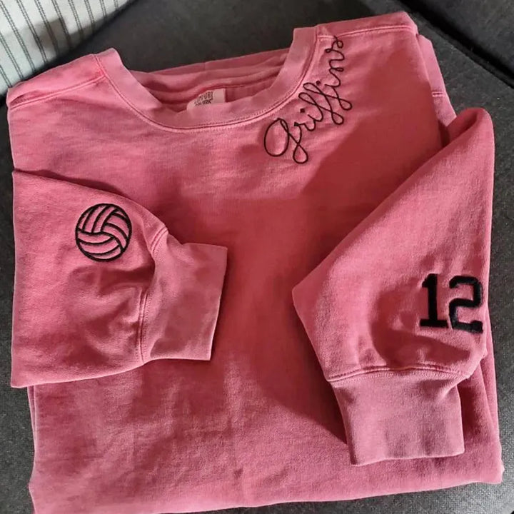 Custom High school Mascot Embroidered Sweatshirt, Embroidered Collar, Football Fan Pullover, Gift for Back To School