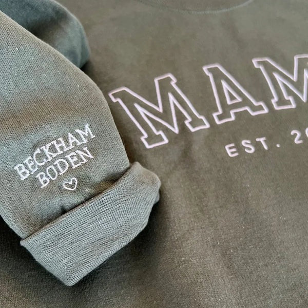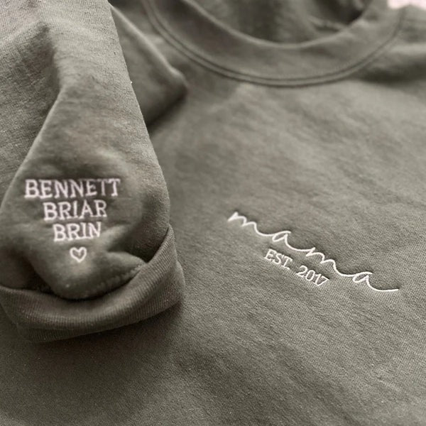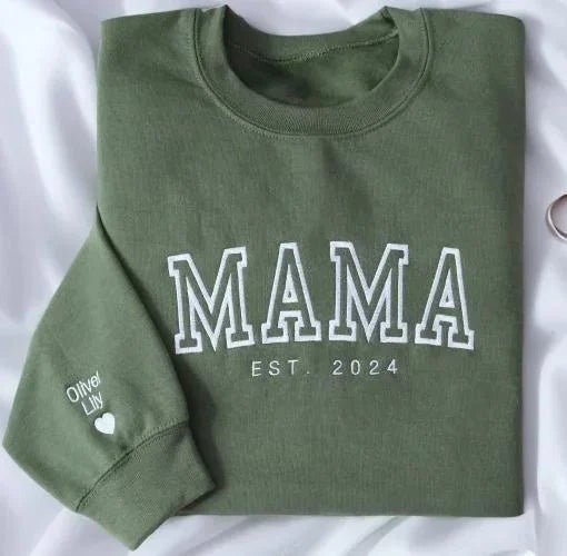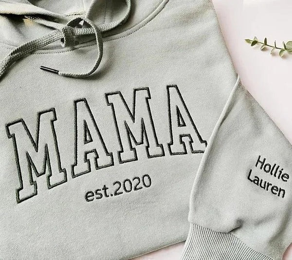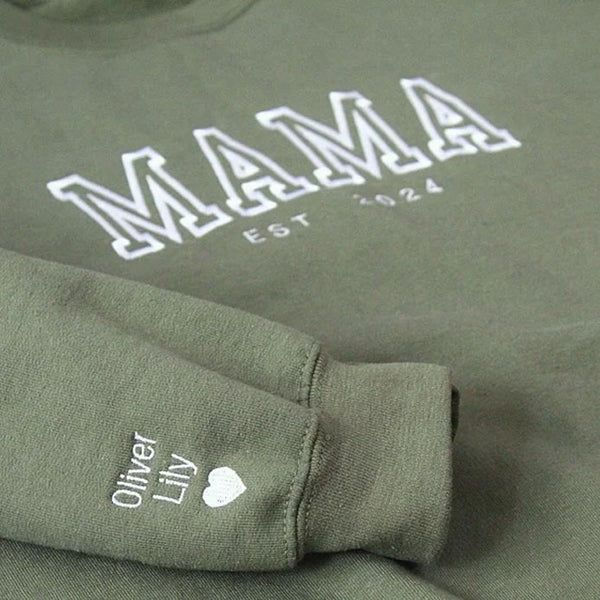 Custom Mama Embroidered Sweatshirt With Kids Names Sleeve