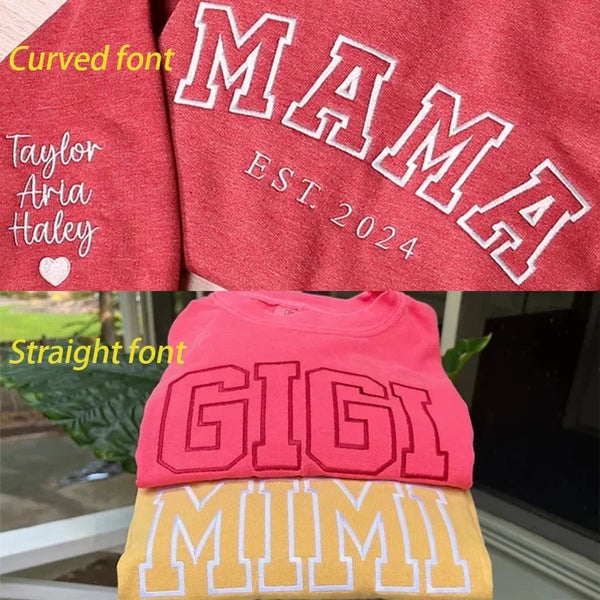 Custom Mama Sweatshirt with Children Name on Sleeve,Custom Neck and Sleeve Design Sweatshirt, Mothers Day, Gift for Mom