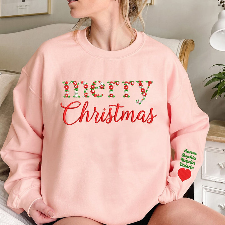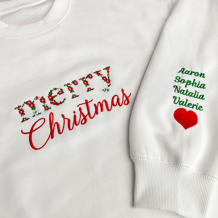 Custom Merry Christmas Floral Embroidered Sweatshirt