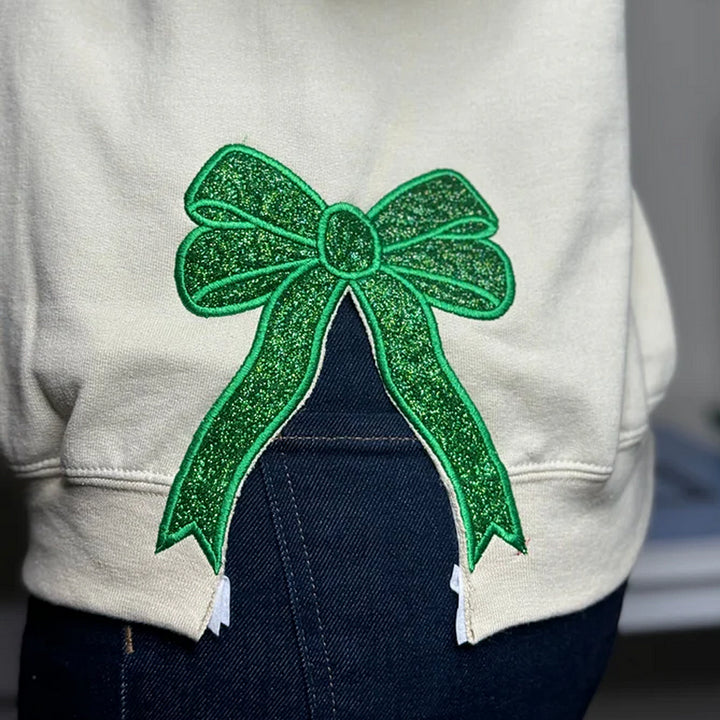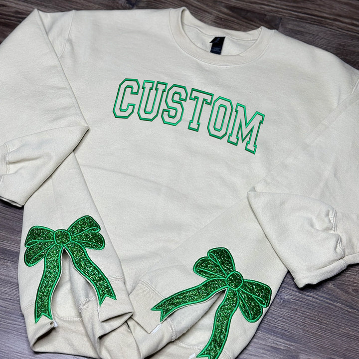 But that's not all – each sweatshirt comes with beautifully embroidered bows on the side, adding a chic and playful touch to this wardrobe essential. The bows enhance the overall design and make the sweatshirt a truly standout piece. Crafted from premium fabric, this sweatshirt offers both comfort and style, making it an ideal addition to your wardrobe or a thoughtful personalized gift for someone special.