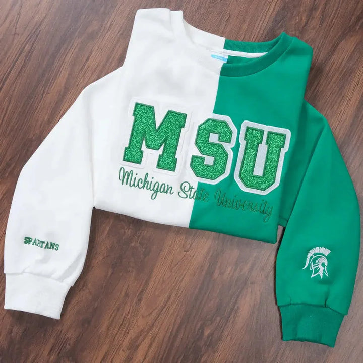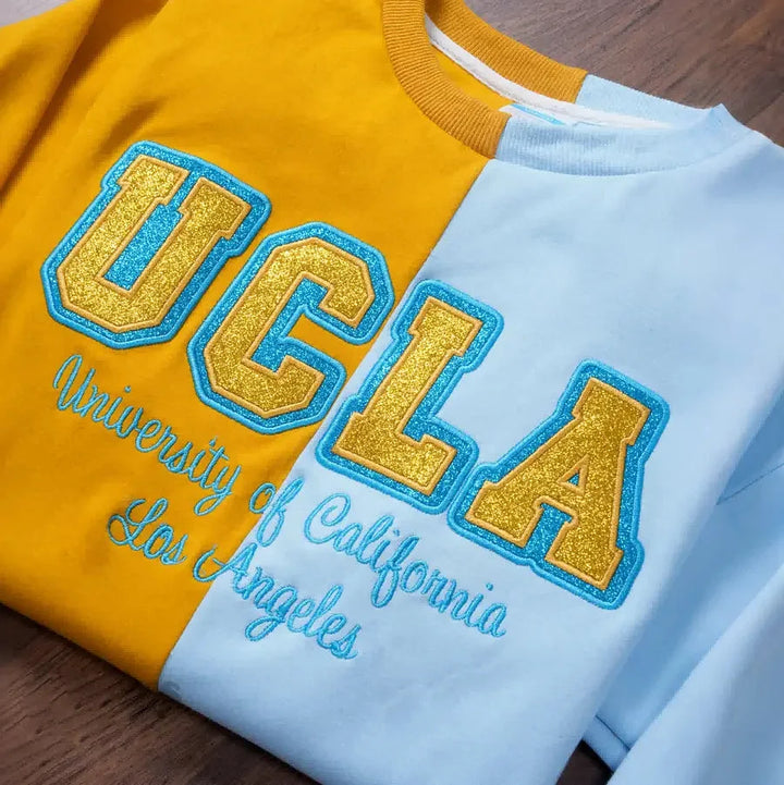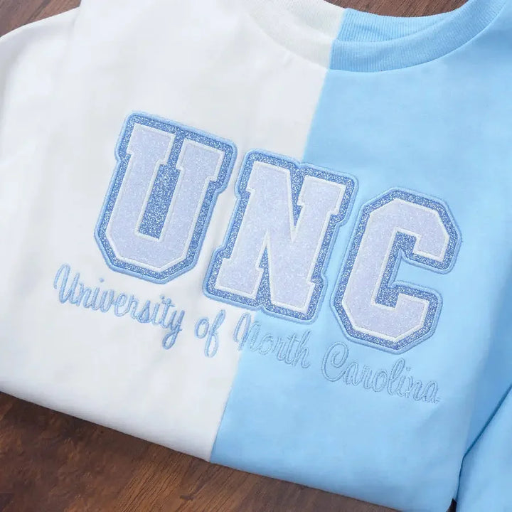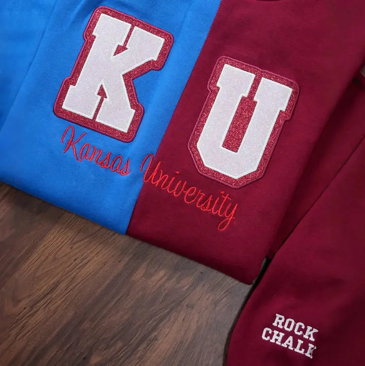 Custom Split Embroidered Two-Tone Sweatshirt | Personalized School Name & Logo Option