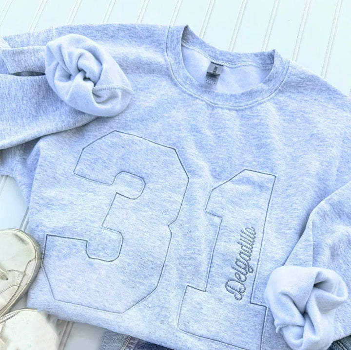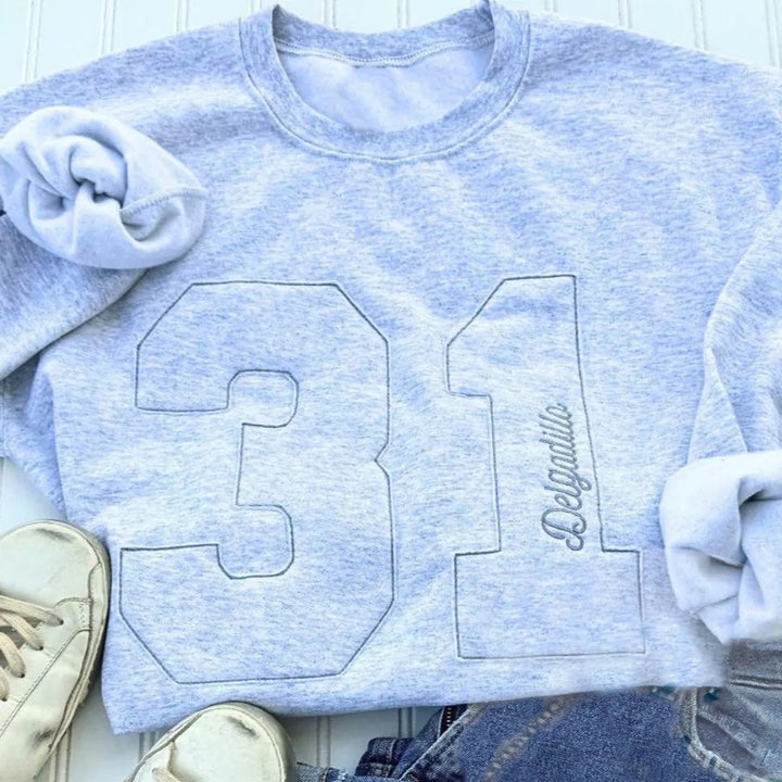 Showcase your team spirit with our CUSTOM Sports Number Embroidered Crewneck. This crewneck features precision embroidery of your chosen number (and optional name or team text), creating a clean, professional look that reads well from the stands. Made from a soft, midweight cotton/poly blend, it delivers warmth and comfort for practices, games, and everyday wear while maintaining a polished athletic aesthetic.