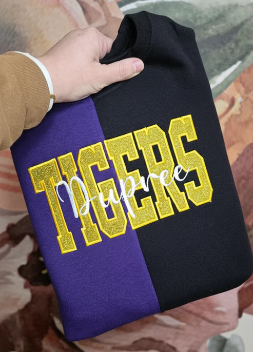 Custom Two Tone Glitter Mascot Sweatshirt School Team Split Fashion Embroidered Sweatshirt