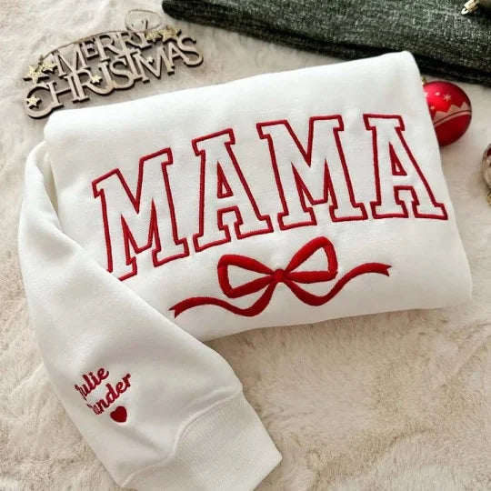 Embroidered Mama Bow Sweatshirt with Kids Name, Gifts for Mom