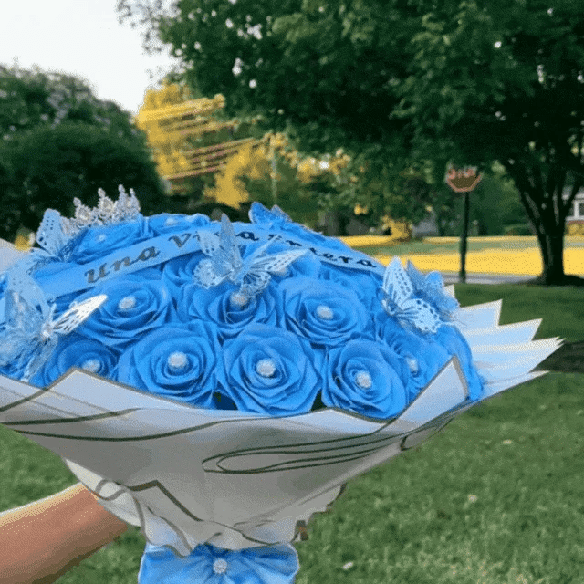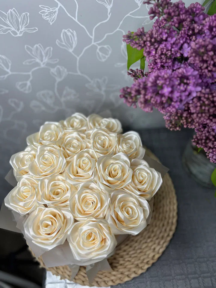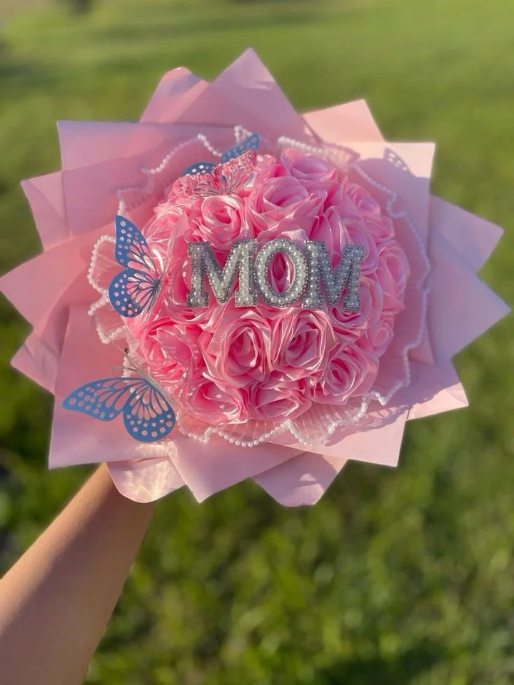 ⨠ROSE MADE FROM RIBBON: Our rose bouquet is handcrafted from ribbon to add a touch of heart to this gift. The subtle sheen of silk creates an air of elegance, making this bouquet a truly unique and memorable gift.