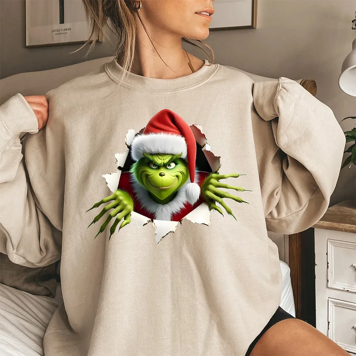 • Eye-Popping 3D Design: The Grinch crashes through the front in his Santa hat, while his playful backside peeks out from a torn print on the back. It’s a hilarious, attention-grabbing detail that’ll have everyone asking, “Where did you get that?!”