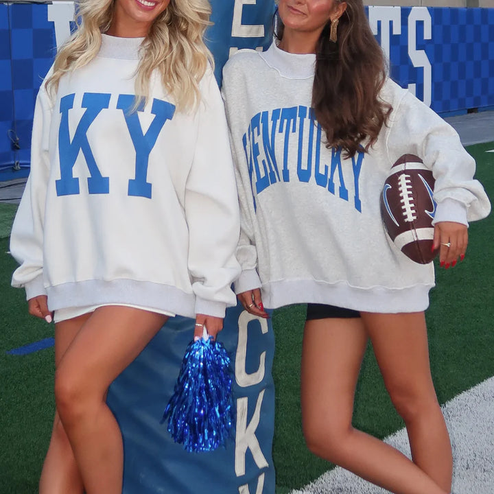 For the girls who’d happily live in a sweatshirt, meet your new obsession.➿ Crafted from premium, ultra-soft fabric, this pullover feels as good as it looks—and yes, it’s cool-girl approved. Flip it to reveal either a bold ‘Kentucky’ or sleek ‘KY’ graphic, so no one has to know you wore it yesterday (we won’t tell). The mock neck adds just the right touch of modern edge, making it perfect for pairing with leggings, denim, or your favorite skirt. Cozy comfort meets effortless style—exactly how it should be.