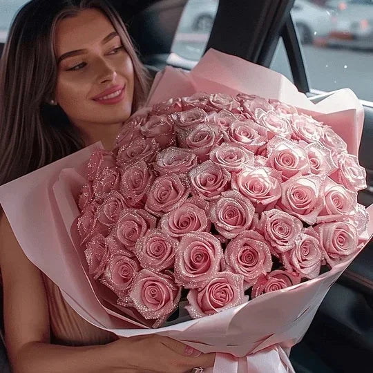 - Sparkling Glitter Roses: Our premium rose is adorned with a delicate layer of glitter, adding a touch of magic to each petal. The subtle shimmer creates an ethereal effect, making this bouquet a truly unique and unforgettable gift.