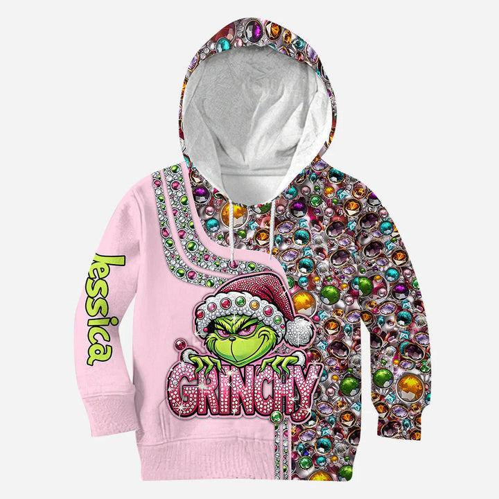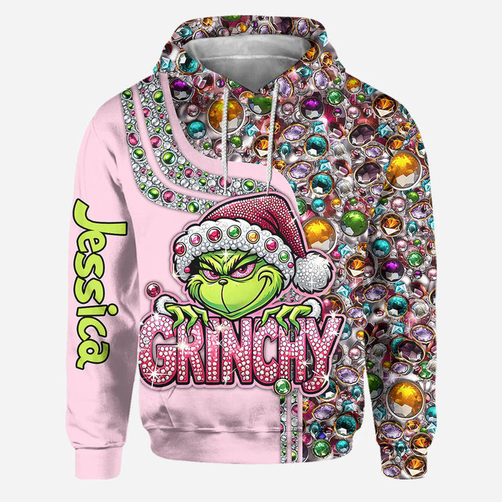 Grch Green Monster Bling Grinchy (Ver 1) - Personalized Hoodie and Leggings - Christmas Gift For Her