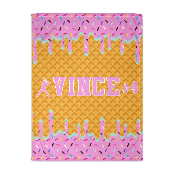 Ice Cream Drip Baseball Personalized Throw Blanket,Game Day Blanket⚾️⚽️🏈