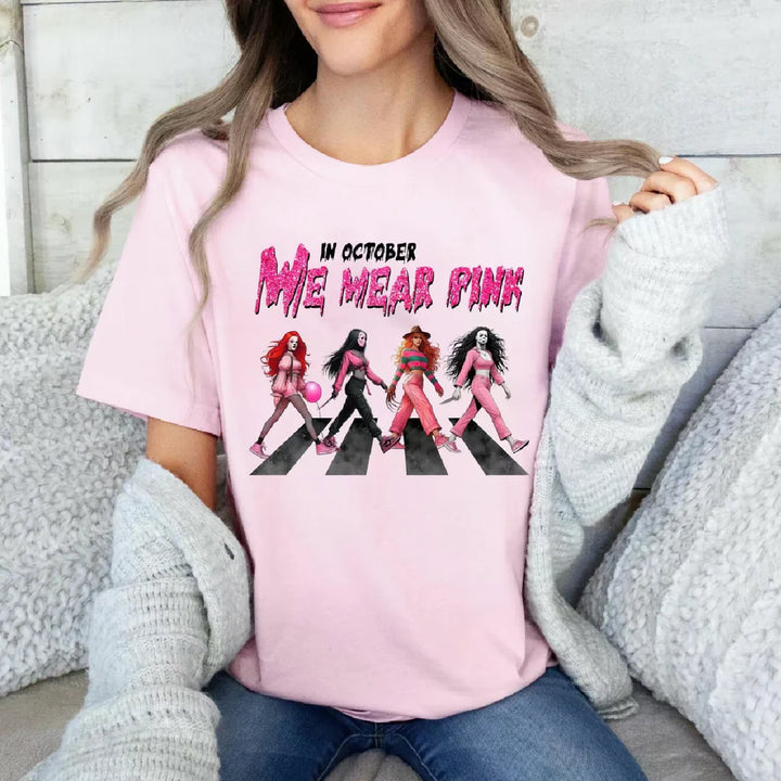 In October We Wear Pink Horror Movie T-Shirt Breast Cancer Awareness Tee Halloween Sweatshirt