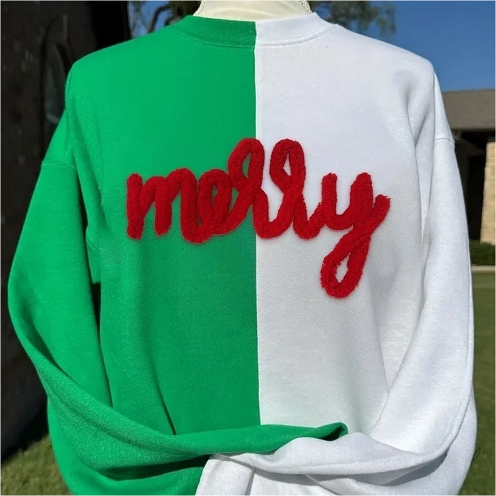 Personalized Christmas Chenille Yarn Sweatshirt Merry Christmas Two Tone Crewneck