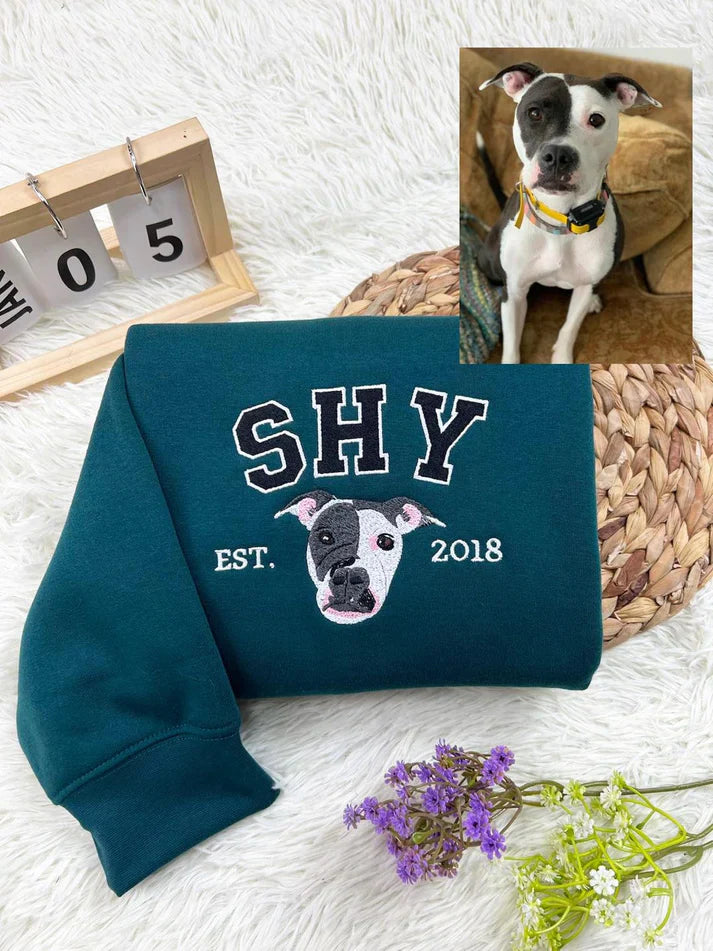 Immortalize your furry friend! Custom embroidered pet portrait EST sweatshirt for pet lover.