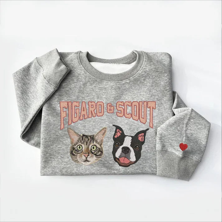Personalized Embroidered Pet Face and Name Sweatshirt for Pet Lovers