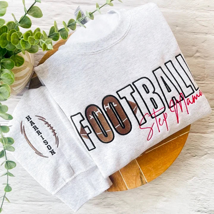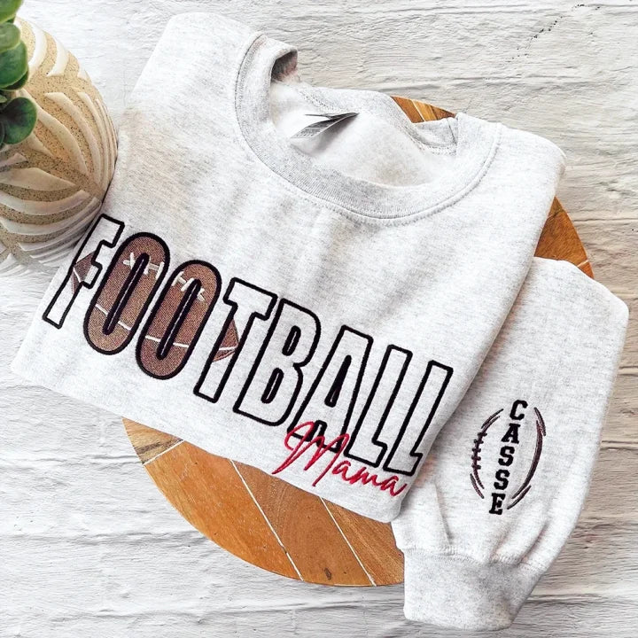 Show your team spirit and mom pride with our Personalized Game Day Mama Sweatshirt. Designed for football, baseball, and soccer moms, this cozy crewneck features a bold "Mama" front graphic (sport-specific option) and your child’s name beautifully embroidered down the sleeve—so your support is always on display. Made for comfort and durability, this sweatshirt keeps you warm through chilly games while looking polished in the stands or at tailgates.
