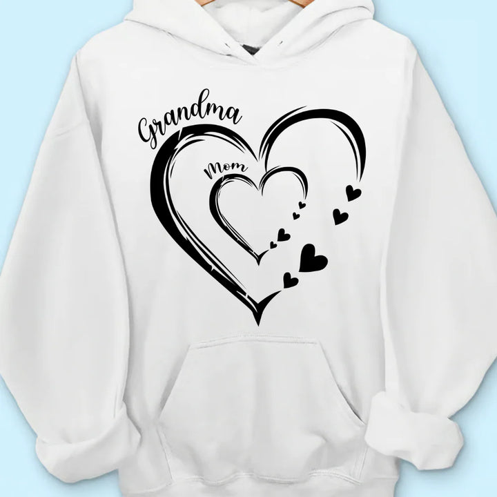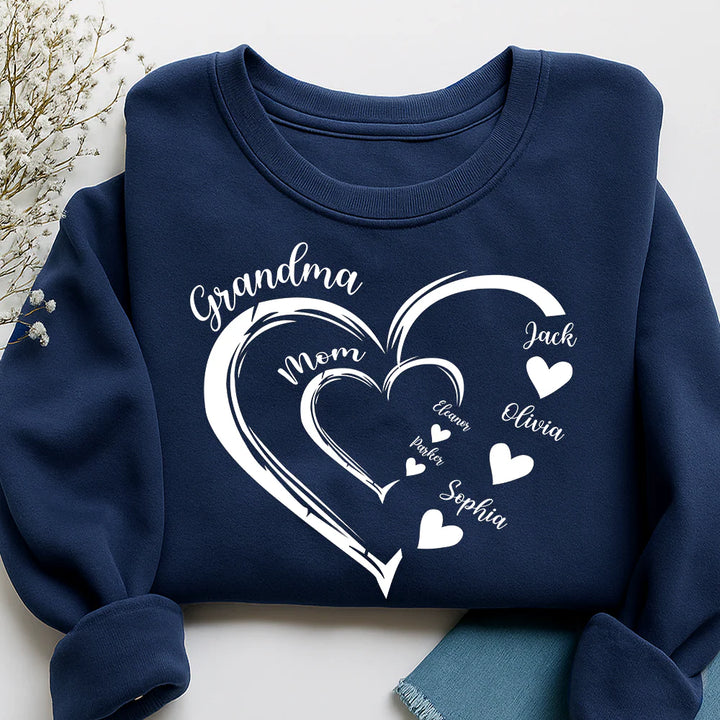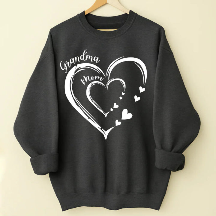Personalized Generations Heart Sweatshirt – Grandma & Mom Custom Names – Double Heart Family Christmas Gift