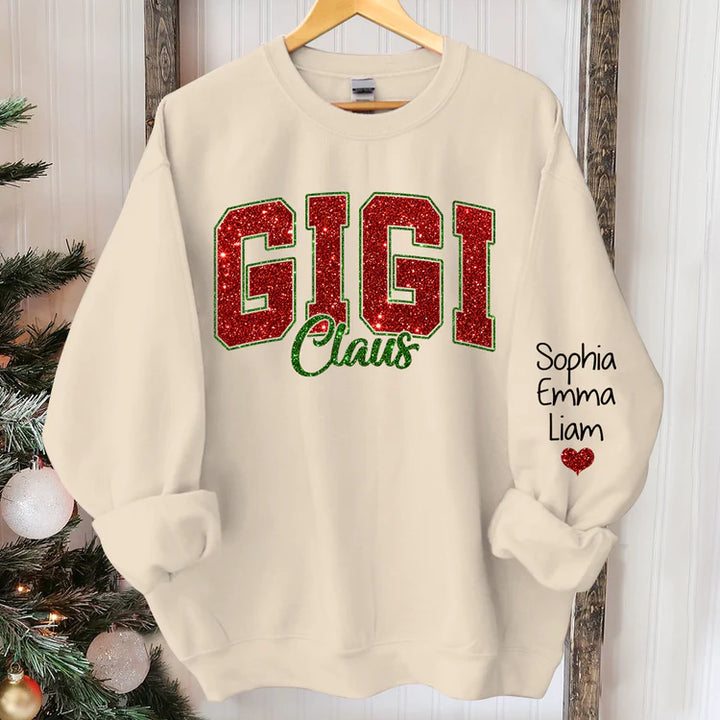 Personalized Glitter Gigi Claus Christmas Sweatshirt With Grandkids, Custom Glitter Grandma Nickname Sweatshirt Hoodie